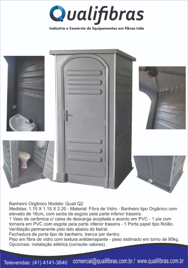 Medidas: 1.15 X 1.15 X 2.20 - Material: Fibra de Vidro - Banheiro tipo Orgânico com